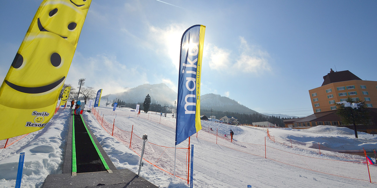 スノーエスカレーター常設でラクラク雪遊び雪遊び専用の「スマイルキッズパーク」はスキー場内2か所にあり、長峰エリアにはスノーエスカレーター常設でラクラク雪遊びが楽しめるほか、スキー・スノーボード専用レーンもあるのでスノーデビューにピッタリ。週末限定 雪の遊園地「MAIKO SNOW LAND」は、バナナボートやスノーモービル体験ができ、キッズからパパママも楽しめます♪